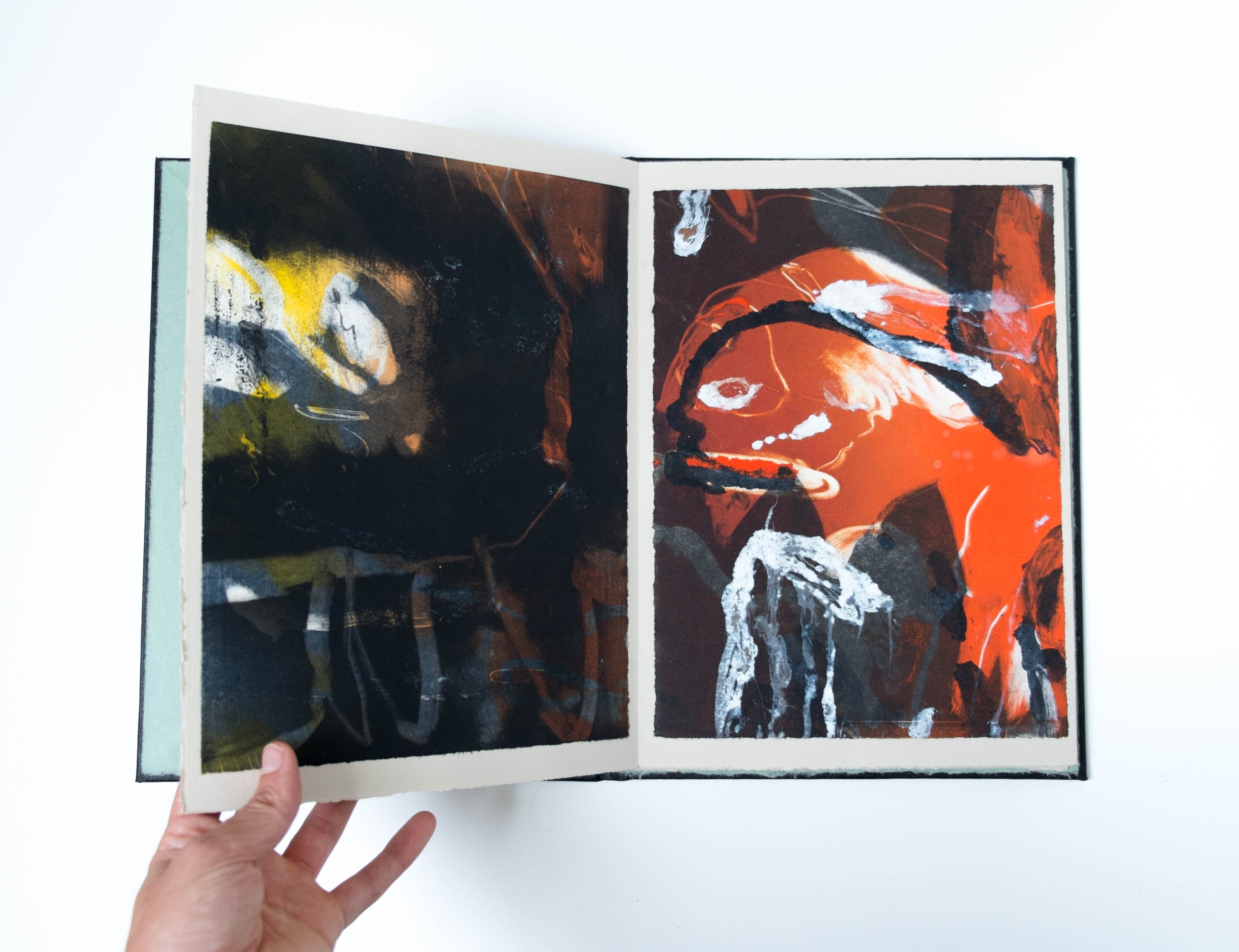Book of 15 multilayered monoprints on 250gsm Hahnemule paper, concertina structure.