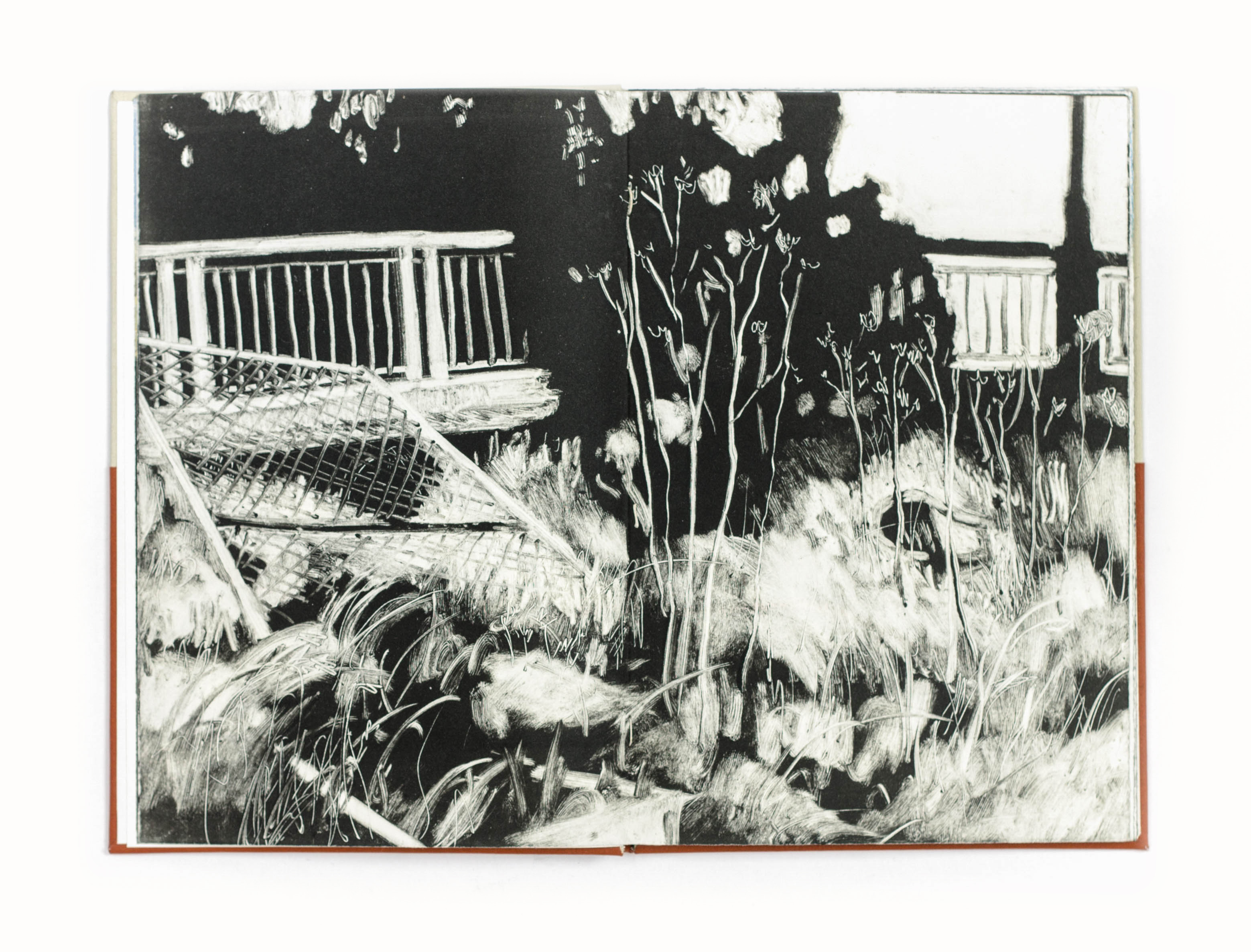 While the prints in this book are all abstract, I made them thinking of the unstoppable momentum of time, the changing land, atmospheric shifts, weather and pollution. They are images created out of exhaustion and a letting go of control. They are products of chance and mistakes and layers of corrections and changes. They are images of nothing in particular, and the state of the whole world.